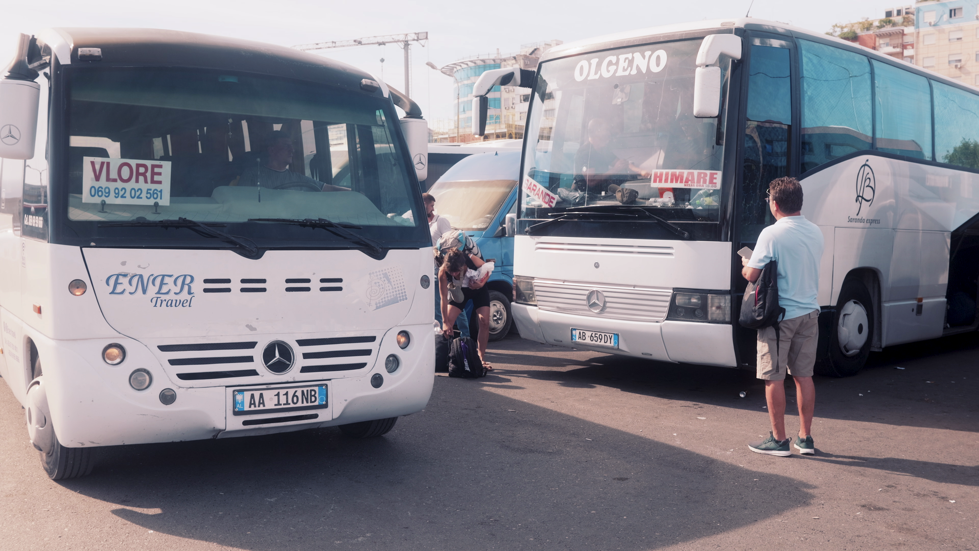 One thing to know: the intercity bus terminal in Vlorë isn't a terminal in any traditional sense. It's a roadside area near the top of the city, close to the Old Town. You'll see a series of minibuses.