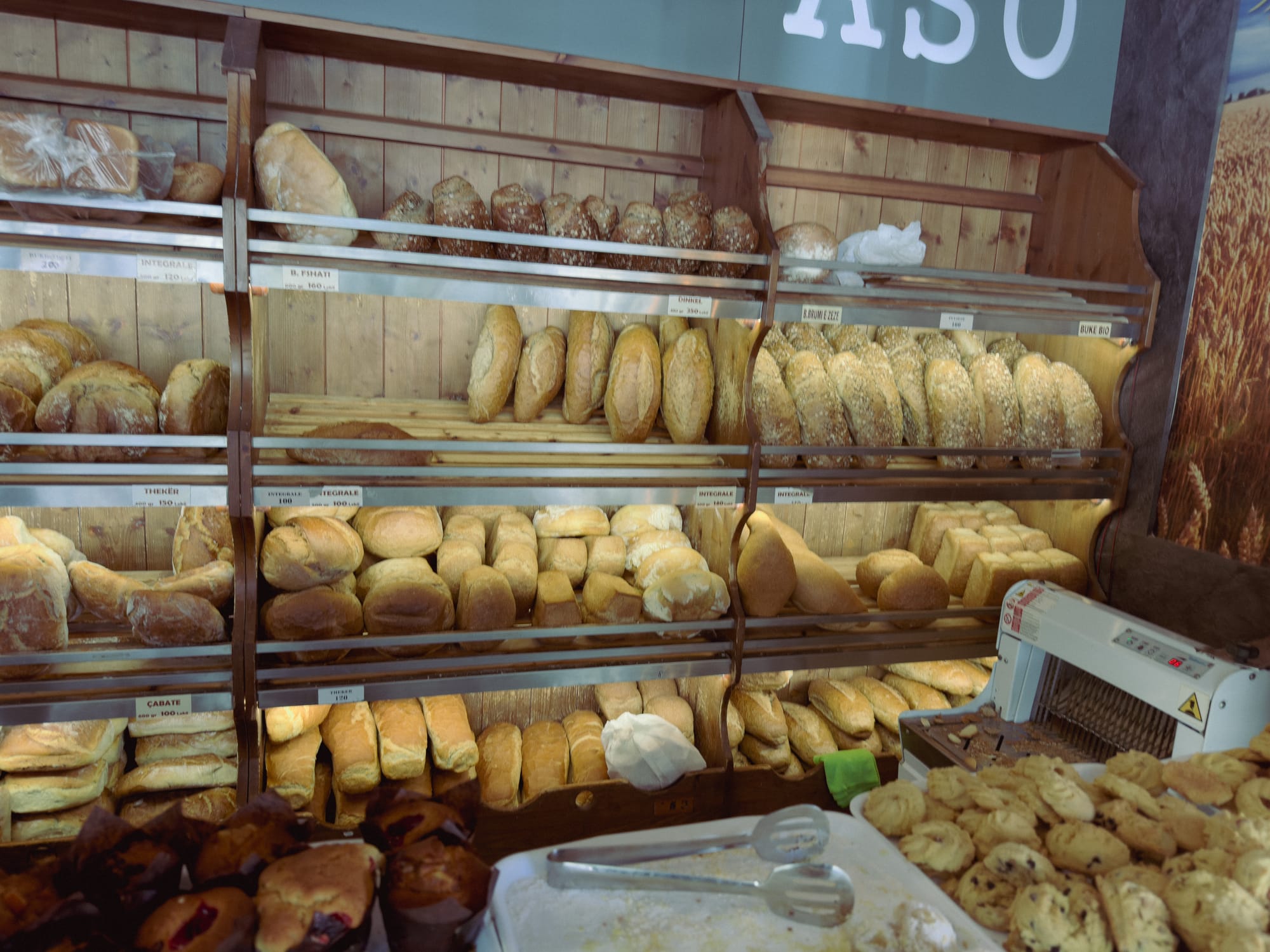 Cheese birek for 72p to £1.08 (80-120 LEK each). A sandwich and two sausage cheese rolls for £2.70. The bakeries here are dangerous for the waistline.